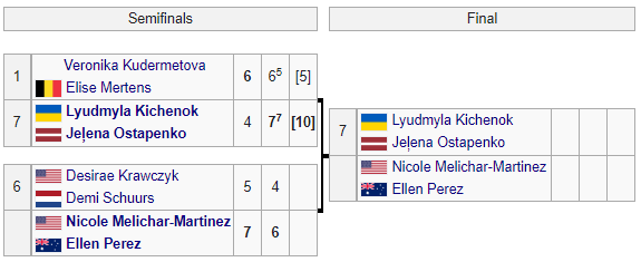 Соперницами Киченок и Остапенко в финале будет пара Николь Мелихар-Мартинес (США) / Эллен Перес (Австралия).