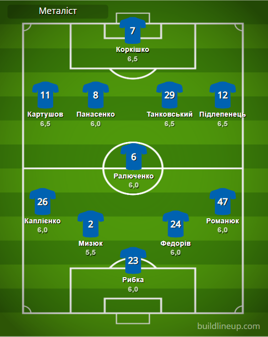 «Металлист»: Рыбка – Каплиенко, Мизюк, Федоров, Романюк – Ралюченко – Картушов, Панасенко (Прядун, 64), Танковский (Порох, 89), Пидлепенец (Багачанский, 76) – Коркишко.