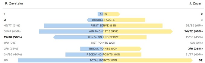 Катарина проиграла всего на два очка меньше, а реализация брейкпоинтов оказалась хуже, чем у соперницы.