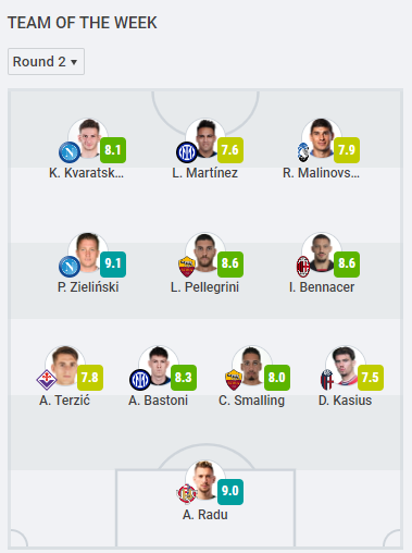 Символическая сборная 2-го тура Серии A по версии SofaScore