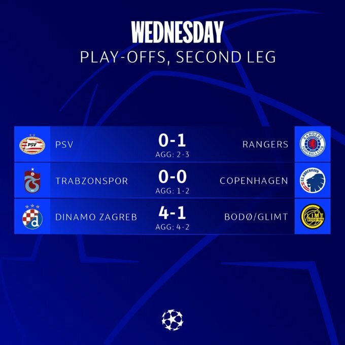 22:00. ПСВ (Нидерланды) – Рейнджерс (Шотландия) – 0:1 [первый матч – 2:2]