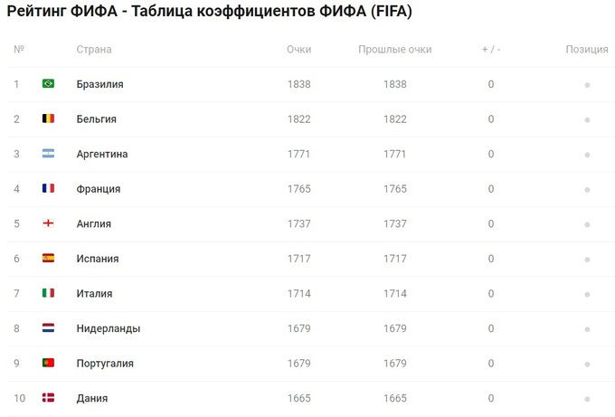 Топ-10 рейтинга ФИФА