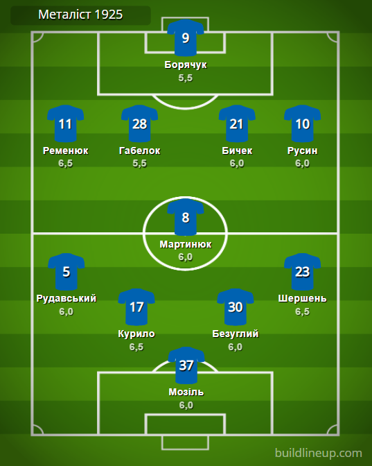 «Металлист 1925»: Мозиль – Рудавский, Курило, Безуглый, Шершень (Капинус, 79) – Мартынюк – Ременюк (Дмитренко, 79), Габелок, Бычек, Русин – Борячук (Д. Кравченко, 79).