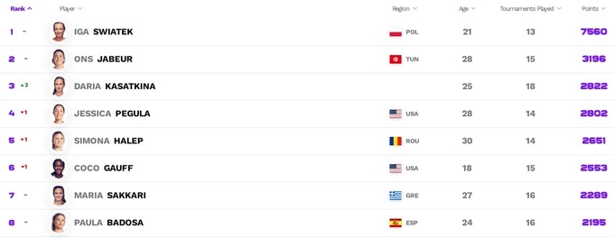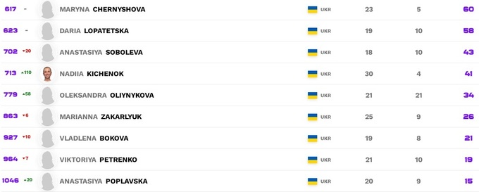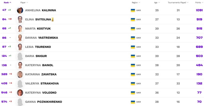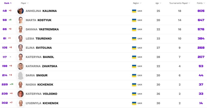 Что касается украинок, то Ангелина Калинина вернула себе звание первой ракетки Украины. На 7 позиций спрогрессировала Марта Костюк, Леся Цуренко добавила две строчки, а Дарья Снигур повторила личный рекорд. У Даяны Ястремской и Катерины Байндл ничего не изменилось.