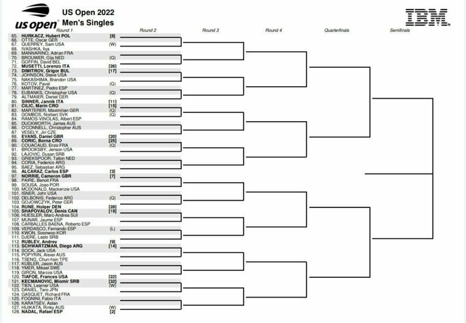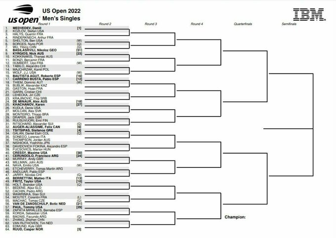 Grand Slam. US Open 2022. Мужчины. Расписание и результаты
