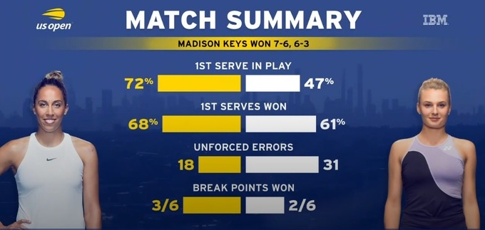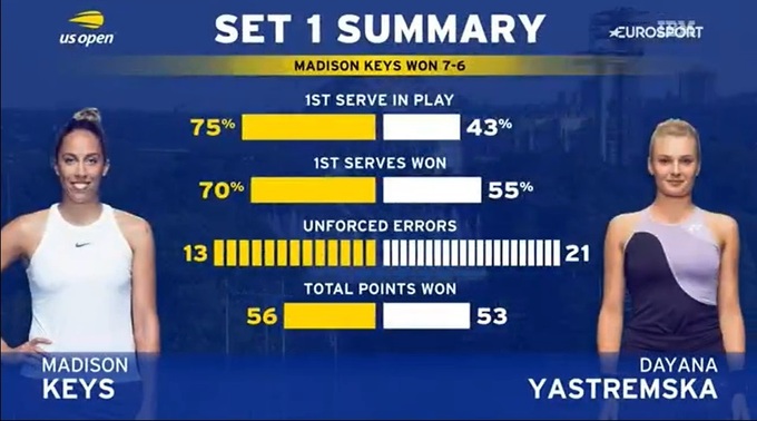 В первом сете украинка билась на равных с американкой и даже вела с брейком 4:1. Киз сумела выровнять ситуацию на корте, но в двенадцатом гейме украинка имела три сетбола на подаче Мэдисон и должна была забирать партию. Сделать это не удалось, а на тай-брейке отыграть чисто не судилось.