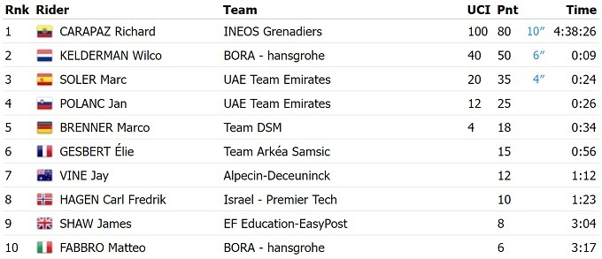 Эквадорский велогонщик команды «Ineos Grenadiers» Ричард Карапас стал победителем 12-го этапа Вуэльты-2022. В борьбе из отрыва он опередил Вилко Келдермана и Марка Солера.
