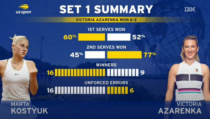 Азаренко в первом раунде не показала чего-то сверхестественного, поэтому с ней можно было сражаться на равных. Что Марта и делала за одним исключением. Как только дело доходило до важных мячей, все сразу же становилось плохо. В первом сете украинка трижды зарубилась в геймах на приеме, имела четыре брейкпоинта, но реализовать их не смогла. Было много ошибок, а на таком уровне это очень быстро ведет к поражению.
