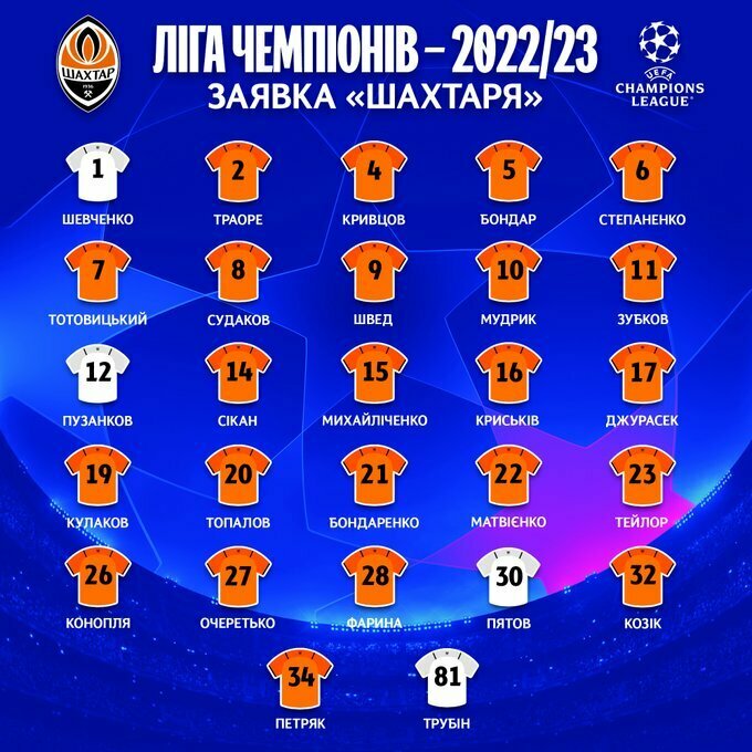 27 игроков. Шахтер заявил футболистов на Лигу чемпионов