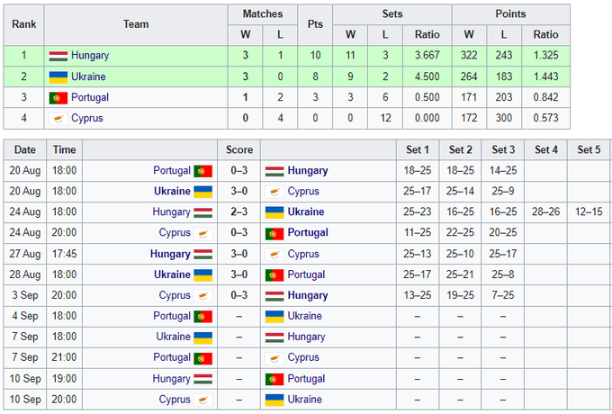 4 сентября в 20:00 в четвертом туре квалификации чемпионата Европы по волейболу среди женщин в группе С сыграют сборные Португалии и Украины.