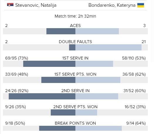 Катерина Володько (Украина) – Наталия Стеванович (Сербия) – 6:2, 4:6, 4:6