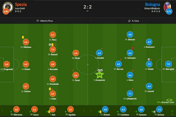 Вчера, 4 сентября, состоялся матч 5-го тура Серии А между «Специей» и «Болоньей». Матч завершился результативной ничьей 2:2.