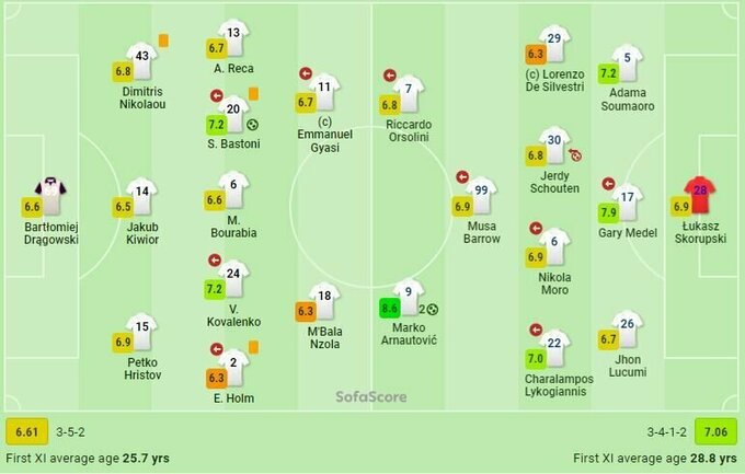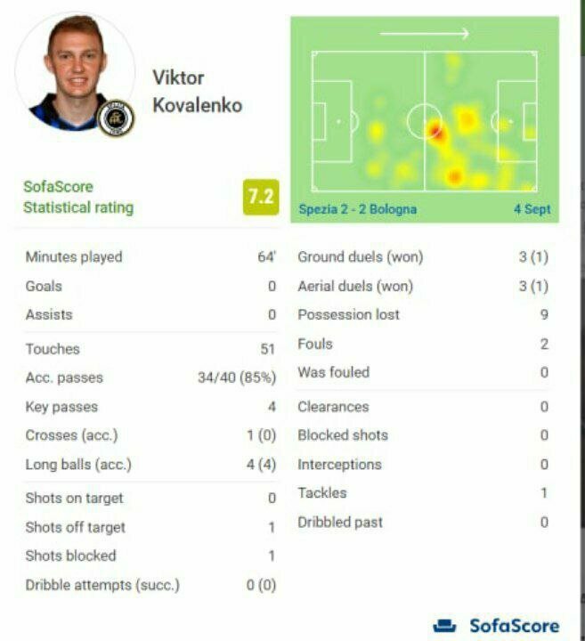Статистический портал SofaScore традиционно выставил оценки футболистам за матч. Именно Коваленко и Бастони были признаны лучшими игроками поединка в составе «Специи». Оба футболиста получили по 7.2 балла.
