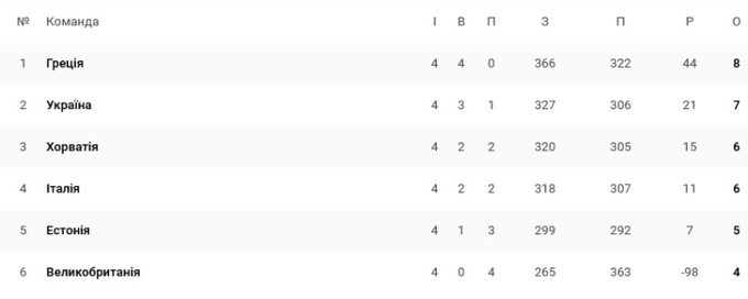 Украинские баскетболисты впервые проиграли, уступив Греции 79:99. В других матчах Эстония разобралась с Великобританией, а Италия обыграла Хорватию.
