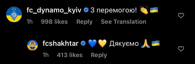 «С победой!», – написали киевляне под постом «Шахтера» в Instagram.