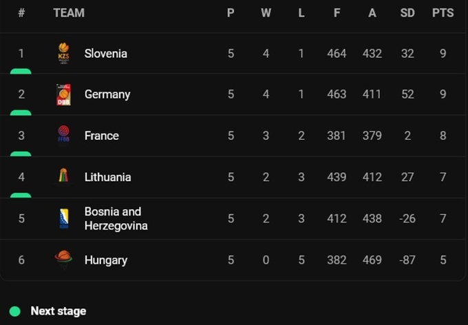 В плей-офф Литва сыграет против Испании. В группе B известны все участники плей-офф: Германия, Словения, Франция, Литва.