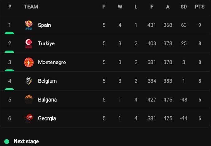 Вслед за Испанией в плей-офф вышли Турция, Бельгия и Черногория.