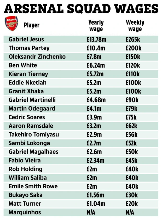 Порівняно з Сіті - агонь. Сака, Одегар, Мартінеллі - мають заробляти більше.