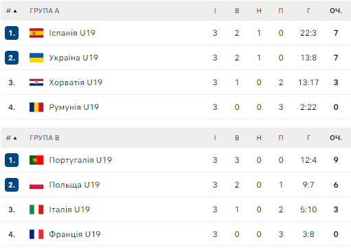 Юношеская сборная Украины вышла в полуфинал со 2-го места в группе, одержав победы над Хорватией (6:4) и Румынией (5:2) и сыграв вничью с Испанией (2:2).