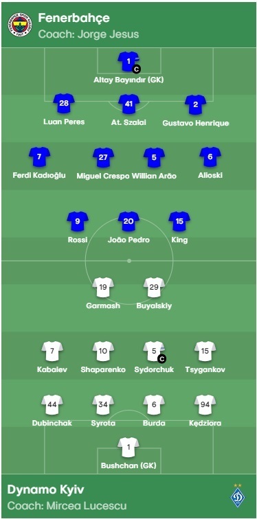 «Фенербахче»: Алтай Баяндыр – Кадиоглу, Густаво Энрике, Салай, Луан Перес – Росси, Виллиан Арао, Креспо, Алиоски – Жоау Педру, Кинг
