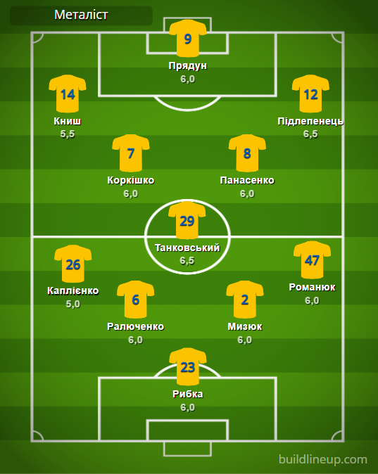 «Металлист»: Рыбка – Каплиенко, Ралюченко, Мизюк, Романюк – Коркишко, Танковский (Багачанский, 71), Панасенко (Демченко, 85) – Кныш (Клименчук, 81), Прядун, Пидлепенец.