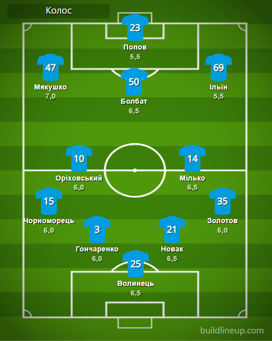 «Колос»: Волынец – Черноморец, Гончаренко, Новак, Золотов – Ориховский (Задоя, 83), Милько (Смирный, 65) – Мякушко, Болбат (Исаенко, 81), Ильин – Попов (Безбородько, 46).