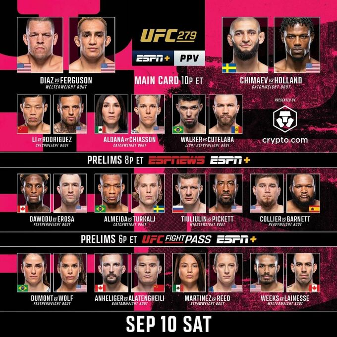 Вечером 3 сентября в Парадайзе, штат Невада, проходит турнир по смешанным единоборствам UFC 279.