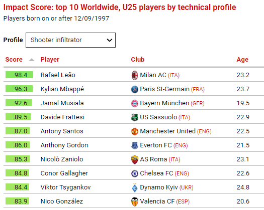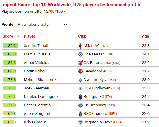 Обсерватория CIES опубликовала рейтинги лучших молодых футболистов