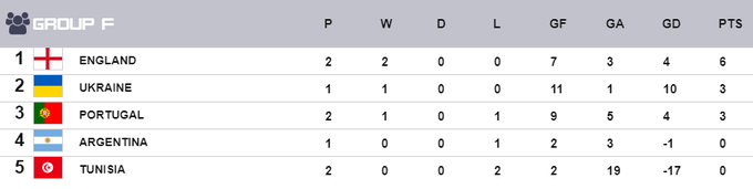 Турнирная таблица группы F