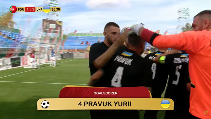 Украина дважды выходила вперед, но португальцы оба раза отыгрались (2:2). У сине-желтых отличились Денис Хруль и Юрий Правук. Португалия спасла игру благодаря удачному розыгрышу углового на последней 40-й минуте.