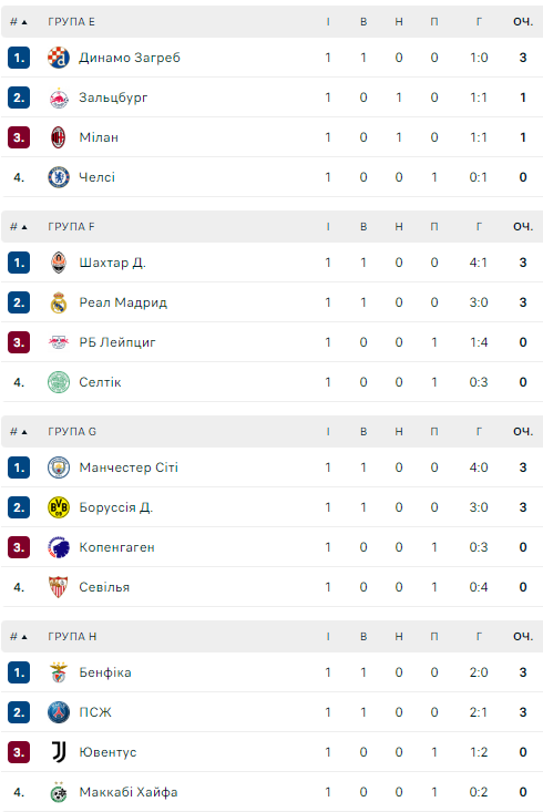 13 сентября состоялись поединки 2-го тура Лиги чемпионов в четырех группах.
