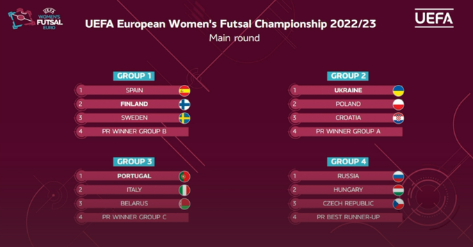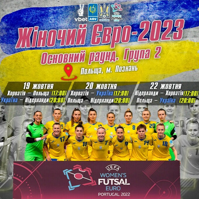 Женская сборная Украины по футзалу начнет свой путь с основного раунда, где ее соперниками по группе 2 будут Польша, Хорватия и победитель группы А предыдущего раунда, которым стали Нидерланды. Украина предварительно должна была быть хозяином мини-турнира, однако из-за российской агрессии УЕФА перенес поединки квартета в Польшу.
