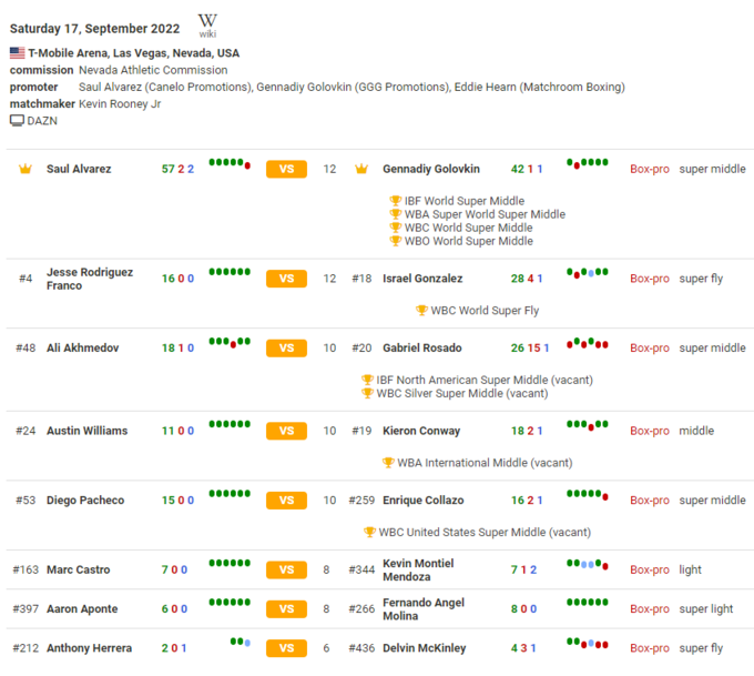 На кону стоит титул абсолютного чемпиона мира во втором среднем весе, которое принадлежит Канело с ноября 2021 года.