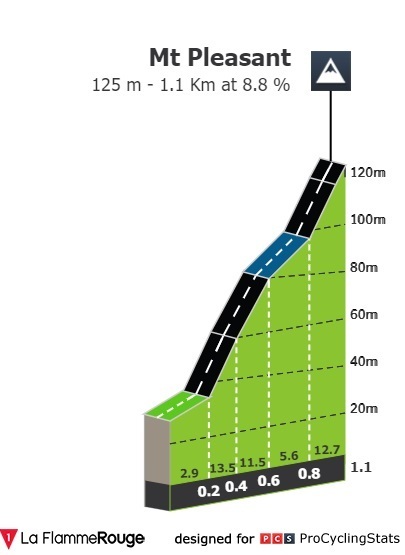 Маршрут групповой гонки, как это чаще всего бывает на чемпионатах мира, идеально сбалансированный – вполне реальны как сценарий спринта из большего или меньшего размеров группы, так и сольной атаки на подъеме Маунт Плезент (1,1 км, 8%), который преодолеют 12 раз, в последний из них – за 8,5 км до финиша.