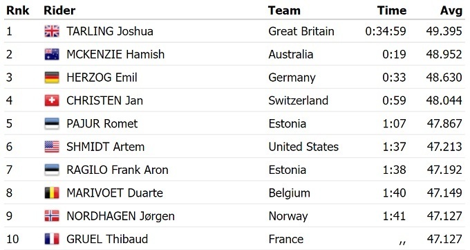 Британский велогонщик Джошуа Тарлинг стал чемпионом мира в гонке с раздельным стартом среди юниоров (до 19 лет). Он опередил австралийца Хэмиша Макензи и немца Эмиля Херцога.