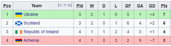 Лига наций. Турнирная таблица группы B1