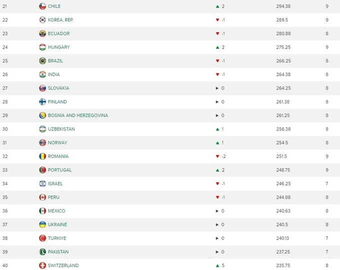 Сборная Украины хоть и проиграла венграм в матчах Первой Мировой группы, осталась на 37-й позиции. К слову, сборная Венгрии поднялась на 2 строчки и теперь 24-я.