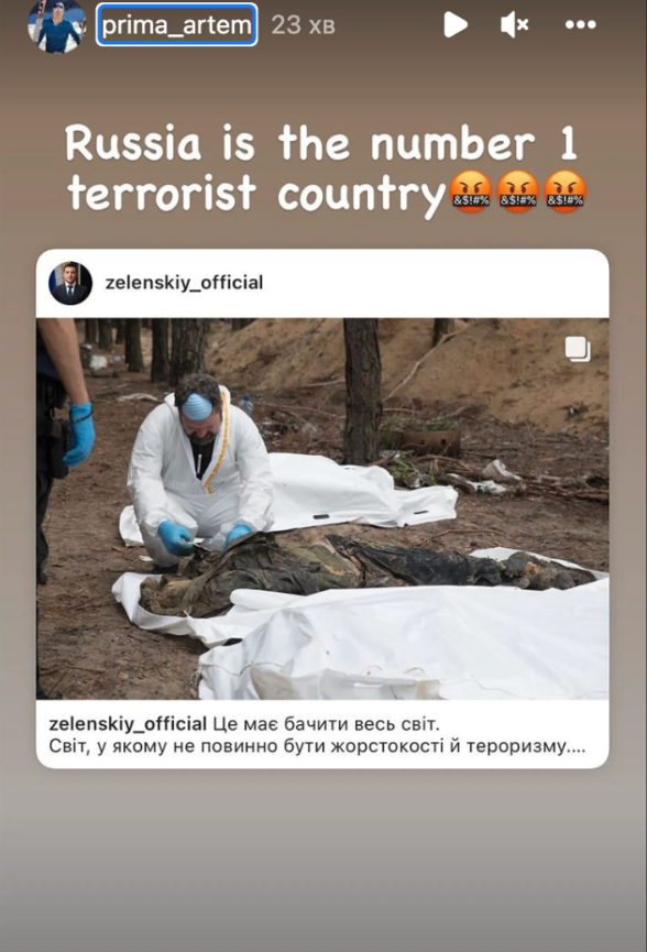 Биатлонист сборной Украины Артем Прима отреагировал на найденные массовые захоронения в Изюме, который долгое время находился под оккупацией.