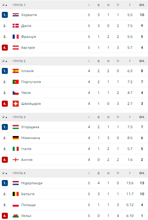 Турнирные таблицы. Нидерланды почти в финале четырех. Итоги дня Лиги наций