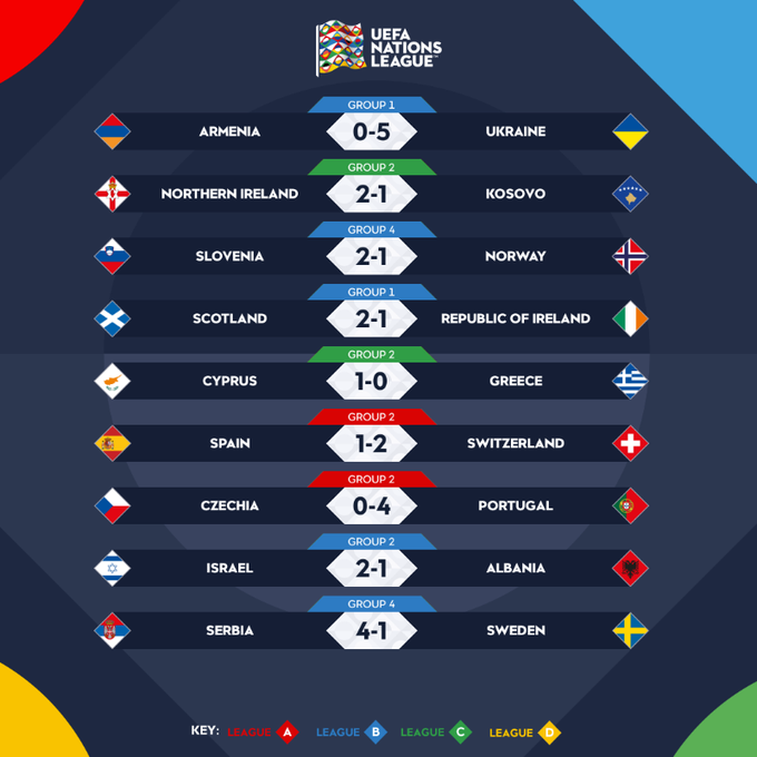 Вечером 24 сентября состоялись очередные матчи Лиги наций