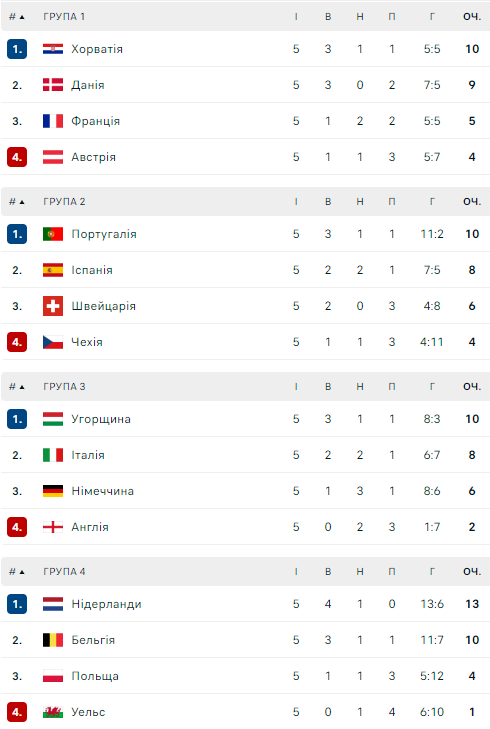Итоги дня Лиги наций. Как выглядят турнирные таблицы после 5-го тура