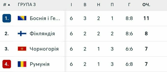 Румыния сенсационно обыграла Боснию и Герцеговину (4:1), но это никак не повлияло на итоговое положение команд.