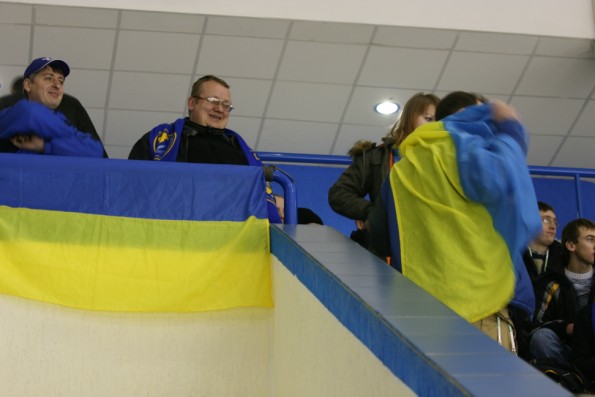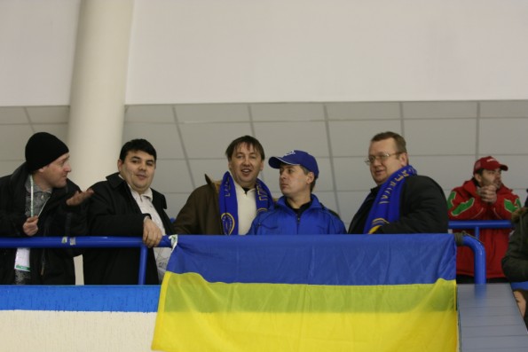 Не осталась без поддержки и украинская сборная. Правда, поддержка была совсем крохотная - около 20-ти человек, но слышно их было очень хорошо