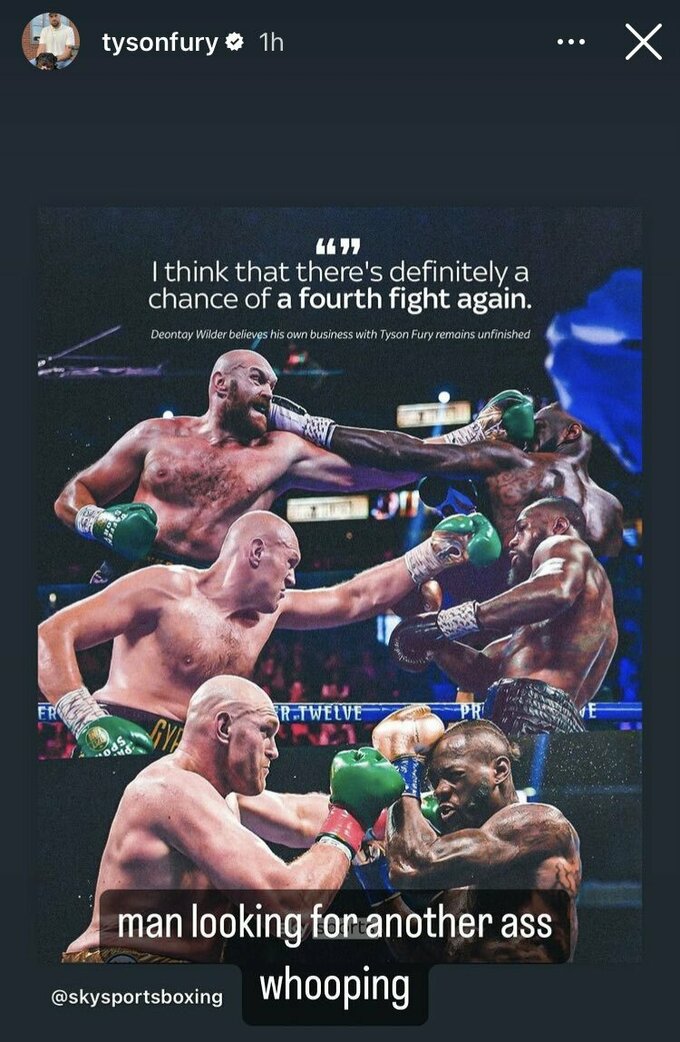 «Хочет, чтобы ему еще раз надрали задницу», – написал Фьюри в инстаграме, добавив фото избиения американца на ринге.