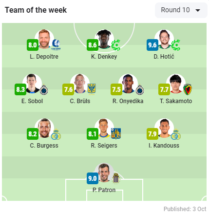 Символическая сборная 10-го тура чемпионата Бельгии (SofaScore)