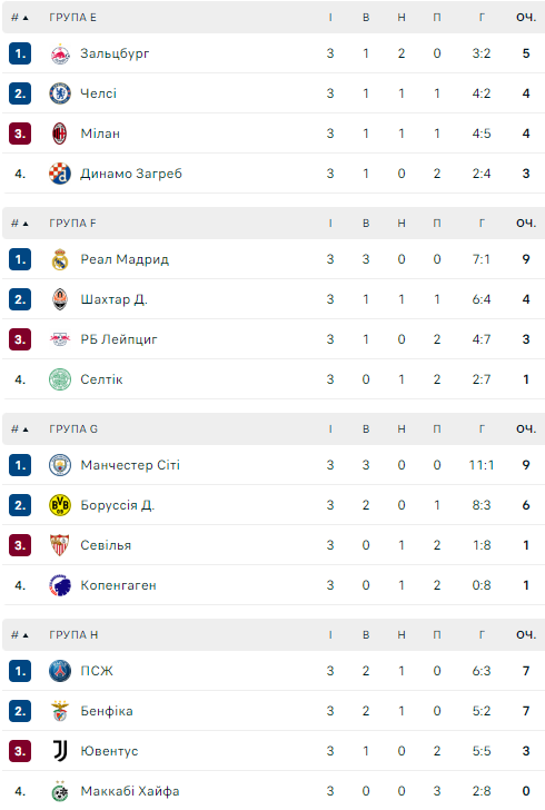 3-й тур ЛЧ. Турнирные таблицы. Голевая феерия от Ман Сити, Челси, Ювентуса