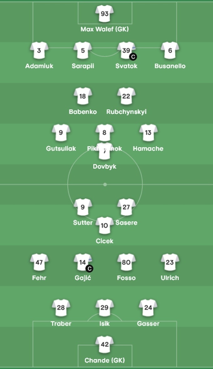 Днепр-1: Валеф, Адамюк, Сарапий, Сваток, Бузанелло, Бабенко, Рубчинский, Гуцуляк, Пихаленок, Амаш, Довбик