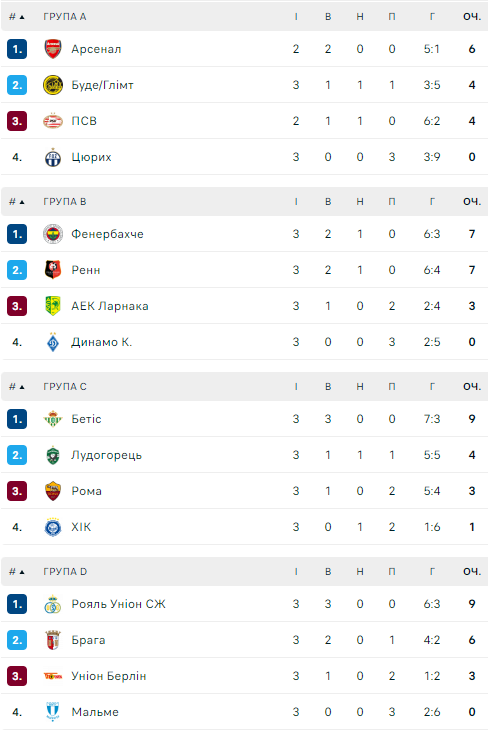 Итоги 3-го тура Лиги Европы. Фиаско Динамо, Роналду обыграл команду Безуса