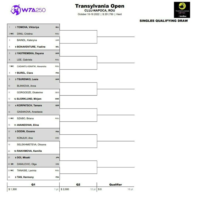 Украинские теннисистки Даяна Ястремская (WTA 92), Леся Цуренко (WTA 95) и Катерина Байндл (WTA 131) сыграют в квалификации турнира серии WTA 250 в Клуж-Напоке (Румыния).