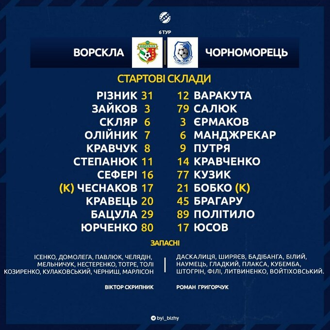 Ворскла – Черноморец. Стали известны стартовые составы